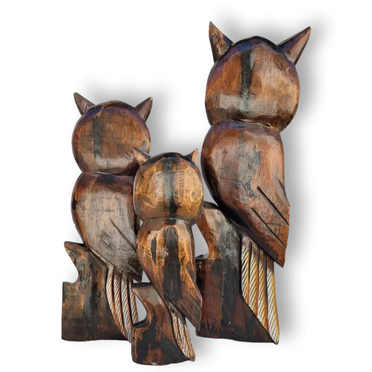 Trío de Búhos en madera grandes de 50cm. - 40cm. - 30cm.