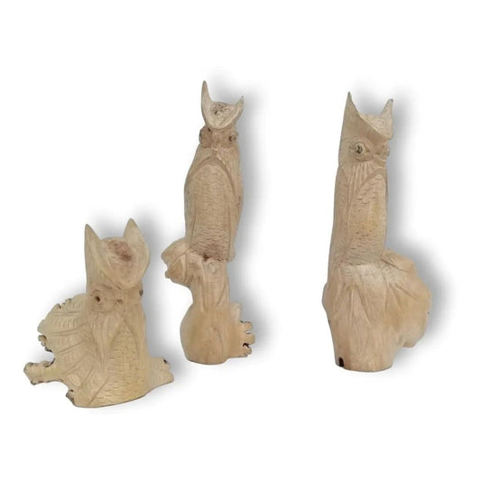 Set de Búhos pequeños en madera de 10cm. - 8cm. - 7cm.