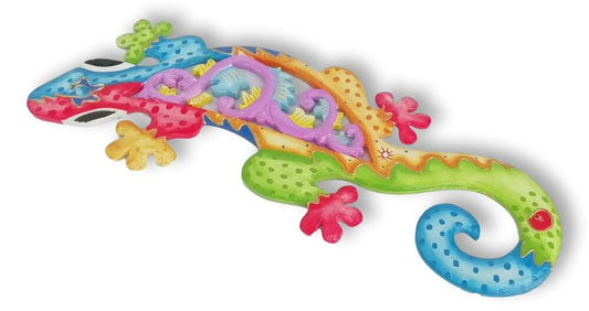 Iguana o Gecko multicolor en madera calada