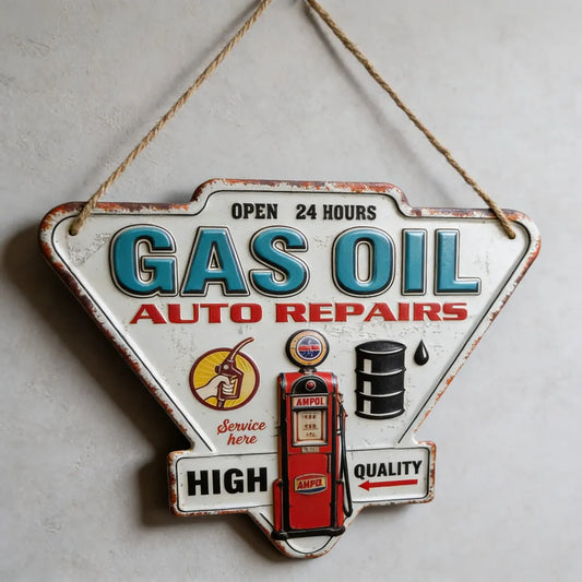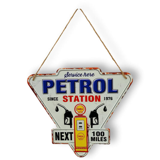 Chapa retro triangular modelo "Gasoline" con relieve
