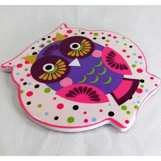 Móvil o Llamador de Ángeles con Búho en base de Coco